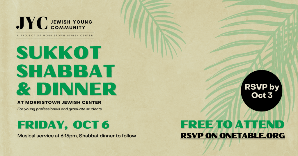 Discover a place where young professionals and graduate students come together to build lasting Jewish connections. Jewish Young Community (JYC) – New Jersey invites you to an enriching evening of community, prayer, and tradition at the Morristown Jewish Center. Immerse yourself in a spiritual journey that sets the tone for the evening and delight in a delicious meal while forging meaningful bonds with fellow young adults.